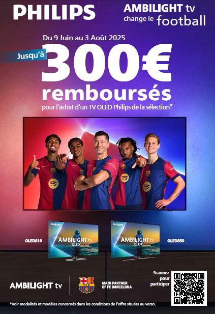 PHILIPS vous rembourse jusqu'à 300€ pour l'achat d'un TV OLED parmi les références éligibles à l'offre.